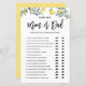 Devine qui ! Maman ou papa ? Ajoutez cette carte de jeu de baby shower botanique amusante et ludique à votre événement. Il présente des illustrations aquarelles de citrons et de verdure. Vous pouvez personnaliser la carte en ajoutant des textes. Cette carte de jeu à baby shower de citron est parfaite pour les douches de printemps et d'été.