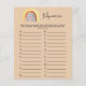 Cette adorable fête de baby shower présente un style boho branché et un script manuscrit branché. Arc-en-ciel peint à l'aquarelle neutre. Jeux correspondants disponibles.
