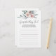 Baby shower à thème rose Boho devinez la carte de jeu de nourriture pour bébé avec une illustration rose aquarelle rose et aquarelle vert eucalyptus garland et élégante police manuscrite.