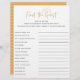 Script Boho "Find the Guest" graphique en jaune rustique avec ligne art soleil détail, feuille de jeu baby shower avec support motif jaune rustique assorti.
