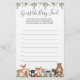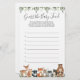 Baby shower à thème pour animaux de bois devinez la carte de jeu pour aliments pour bébés avec une aquarelle safari animaux illustration et aquarelle vert eucalyptus garland et élégante police manuscrite.