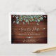 Réservez la date! Annoncez votre mariage à vos amis et à votre famille avec ce budget bois rustique et eucalyptus enregistrer les cartes de date. Ces cartes de faire-part de mariage budgétaires ont une option d'enveloppe. Personnalisez avec les noms, la date du mariage, l'emplacement. Ajoutez toute autre information au verso. Ce mariage unique en matière de verdure sauve les cartes et fera une impression durable, vos invités s'assureront de sauver la date! DROIT D'AUTEUR © 2020 Judy Burrows, Black Dog Art - Tous droits réservés. Bois Rustique Vert Budget Mariage Enregistrer La Date