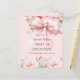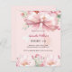 Arrière - plan rose vif, décoré d'un grand arc rose et de fleurs roses. Personnalisez et ajoutez un nom et des détails du parti. 1 feuille = 1 invite imprimé bord à bord.