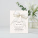 A soft ivory background, decorated with a large white bow with pearls. Elegant and gender neutral. Personalize and add a name and party details.