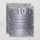 Une invitation moderne, élégante et glamour pour la fête du 10e anniversaire d'une fille. Un arrière - plan faux argenté, décoré de poussière de parties scintillant. Personnalisez et ajoutez votre nom et les détails de votre fête. Le numéro 10 est écrit avec une police de style ballon, un script.