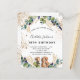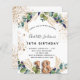 Pour un 18ème anniversaire. Un arrière - plan blanc décoré de verdure d'eucalyptus et de feuilles dorés. Taches de fausse parties scintillant dorée. Personnalisez et ajoutez vos noms et les détails du mariage. Lettres noires et dorées. Le numéro 18 est écrit avec une police de style ballon. Dos : taches d'arrière - plan blanc et taches de faux parties scintillant doré.