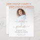 Un rapport qualité-prix BUDGET alternative sur une taille plus petite 4,5 x 5,6" semi-brillant poids 110lbs, qui est d'une épaisseur similaire à une carte postale (cependant ne convient pas à l'utilisation comme carte postale.) VEUILLEZ NOTER qu'il y a UN par feuille. Budget 2024 Graduation Photo Rose Gold Parties scintillant Faire-part. D'élégantes bordures de parties scintillant en or rose sont en haut des deux côtés. Le diplômé est dans un script élégant avec des swashes. Personnalisez facilement le texte selon vos propres besoins, y compris au verso, et remplacez l'exemple d'image par le vôtre. Pour conserver l'aspect contemporain minimaliste de ce design, une photo avec un arrière - plan de couleur claire fonctionnera bien.