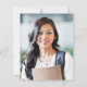 Cette invitation à la fête de graduation 2025 branchée présente une image aquarelle d'une géode d'agate dans les tons violet avec des reflets de parties scintillant en faux or. Le mot "Graduation" et le prénom du diplômé apparaissent dans un élégant script d'écriture couleur or sur un arrière - plan non noir, ainsi que dans un casquette de carton de mortier couleur or et les détails de la fête dans les polices sans serif et italique. Remplacez facilement l'image de l'échantillon au dos par une photo verticale du diplômé.