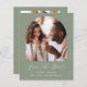 Cette simple et minimaliste carte Save the Date présente une arche photo boho au-dessus des mots "Save the Date" dans un élégant script d'écriture manuscrite blanche, suivi des noms du couple, date mariage et ville en sans serif police sur un arrière - plan vert sage. Ajoutez une seconde photo horizontale et un message plus détaillé avec des informations supplémentaires sur l'inverse.