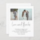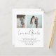 Un rapport qualité-prix BUDGET alternative sur une taille plus petite 4,5 x 5,6" semi-brillant poids 110lbs, qui est d'une épaisseur similaire à une carte postale (cependant ne convient pas à l'utilisation comme carte postale.) VEUILLEZ NOTER qu'il y a UN par feuille. Budget 2 Photo QR Code Love and Thanks Mariage Style minimaliste informel. Remplacez simplement les deux exemples de photos par vos propres favoris. Love and Thanks est dans un élégant script de style manuscrit, et facilement personnaliser le reste du texte. Ajoutez votre code QR à votre site Web mariage à l'arrière, ce qui en fait une occasion pratique de faire savoir à vos clients comment visionner vos photos mariages. Vous pouvez créer des codes QR gratuitement en ligne. Il suffit de chercher "créateur de code QR" et beaucoup d'options viennent créer gratuitement.