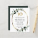 Budget 30e anniversaire Eucalyptus Gold Metallic Party Invitation... Notre invitation de 30ème anniversaire botanique de luxe abordable comprend un cadre (faux) or métallique ovale orné de vert poussiéreux et des feuilles d'eucalyptus émeraude créant une bordure élégante pour le texte de l'invitation à l'intérieur. Au-dessus du texte de l'invitation se trouve un graphique en or numéro 30 qui ajoute à l'atmosphère luxueuse de cet invitation unique de fête d'anniversaire. Tout le texte peut être facilement révisé avec vos propres détails sur le modèle de personnalisation.