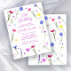 Des fleurs sauvages de printemps colorés entourent les détails de votre fête d'anniversaire. Moderne, tendance et féminin.