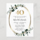 Budget 40e anniversaire Eucalyptus Gold Metallic Party Invitation... Notre invitation de 40ème anniversaire botanique de luxe abordable comprend un cadre (faux) or métallique ovale orné de feuilles d'eucalyptus vert poussiéreux et émeraude créant une bordure élégante pour le texte de l'invitation à l'intérieur. Au-dessus du texte de l'invitation se trouve un graphique de numéro 40 d'or qui ajoute à l'atmosphère luxueuse de cet invitation unique de fête d'anniversaire. Tout le texte peut être facilement révisé avec vos propres détails sur le modèle de personnalisation.