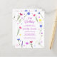 Des fleurs sauvages de printemps colorés entourent les détails de votre fête d'anniversaire. Moderne, tendance et féminin.