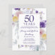 Des fleurs d'aquarelle élégantes et joliment abstraites entourent les détails de votre fête du 50e anniversaire de mariage. Des fleurs mauves et roses douces avec un trait de jaune créent un arrière - plan printanier. 50 ans est écrit en gros caractères. Les noms du couple d'anniversaire sont écrits dans un script branché.