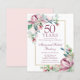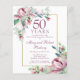 Elégant 50e anniversaire mariage modèle d'invitation dispose d'un cadre doré et deux arrangements de roses roses rousses. Tout le texte est modifiable.