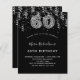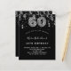 Une invitation moderne, élégante et glamour pour un 60ème anniversaire. Un arrière - plan noir, décoré de confettis argentés. Le nom est écrit avec un script de style moderne écrit à la main. Personnalisez et ajoutez les détails de votre fête. Le numéro 60 est écrit avec une police de style ballon tendance, motif léopard.