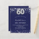 Une invitation moderne, élégante et glamour pour un 60ème anniversaire. Un arrière - plan bleu marine, décoré de faux étoiles argentées. Personnalisez et ajoutez votre nom et les détails de votre fête. Le numéro 60 est écrit avec une police de style ballon.