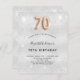 Une invitation moderne, élégante et glamour pour une fête de 70e anniversaire. Un arrière - plan faux argenté, décoré de poussière de parties scintillant. Personnalisez et ajoutez votre nom et les détails de votre fête. Le numéro 70 est écrit avec une police rose de style ballon d'or, script.