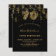 Une invitation moderne, élégante et glamour pour une fête de 70e anniversaire. Un arrière - plan noir, décoré de confettis. Le nom est écrit avec un script de style moderne écrit à la main. Personnalisez et ajoutez les détails de votre fête. Le numéro 70 est écrit avec une police de style ballon tendance, motif léopard.