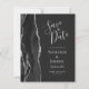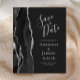 Le bord gauche de cet élégant mariage moderne, sauf la carte de date, est doté d'une bordure en aquarelle noire taillée avec une parties scintillant en faux argent. Le texte personnalisable combine écriture gris argent, copperplate et polices italiques sur un arrière - plan non noir. L'envers présente un design d'agate noir et argent assorti.