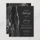 Le bord gauche de cette élégante faire-part de mariage moderne est orné d'une bordure en aquarelle noire et d'une parties scintillant en faux argent. Le texte personnalisable combine écriture manuscrite, copperplate et polices italiques en gris argenté clair sur un arrière - plan non noir. L'envers présente un design d'agate noir et argent assorti.