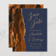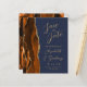 Le bord gauche de cet élégant mariage moderne sauf la carte de date comporte une bordure d'aquarelle orange brûlée et parée d'une parties scintillant en faux or. Le texte personnalisable combine écriture manuscrite couleur or, cuivre et polices italiques sur un arrière - plan bleu marine. L'envers est assorti d'une agate orange brûlée et dorée.