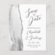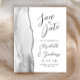 Le bord gauche de cet élégant mariage moderne, sauf la carte de date, comporte une bordure en aquarelle grise, découpée avec une parties scintillant en faux argent. Le texte personnalisable combine écriture manuscrite grise au fusain, cuivre et polices italiques sur un arrière - plan blanc. L'envers présente un design d'agate gris et argenté assorti.