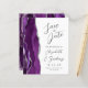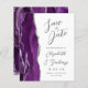 Le bord gauche de cet élégant mariage moderne, sauf la carte de date, est doté d'une bordure d'aquarelle violette ornée d'une parties scintillant en faux argent. Le texte personnalisable combine écriture manuscrite grise au fusain, cuivre et polices italiques sur un arrière - plan blanc. L'envers est assorti d'un design d'agate violet et argenté.