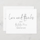 Amour et Merci Futur Mme Fête des mariées ou Hen Party. Un prix économique PETIT 4,5 po x 5,6 po alternatif. Disponible dans un STOCK CARTE SEMI GLOSS 110 lb qui est l'option par défaut (recommandé pour les invitations), OU un STOCK PAPIER THINNER SATIN FINISH 80 lb (idéal pour les boîtiers). Les enveloppes sont en option et légèrement plus grandes que la taille de la carte. Love & Thanks and The Future Mrs sont placés dans un élégant script de style manuscrit sur le devant et le reste du texte sur chaque côté, vous pouvez facilement personnaliser avec vos noms, et votre message de remerciement. Affiché en noir et blanc, cependant peut être changée à n'importe quelle couleur de votre choix via l'option personnaliser supplémentaire.