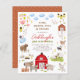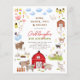 Fêtez le grand jour de votre petit fermier avec cette invitation de fête d'anniversaire ! Cette invitation à la fête d'anniversaire présente un cadre plein de charmantes illustrations d'animaux de ferme. Il y a deux petits cochons, une famille de canards, vaches, lapins lapins, un cheval et un âne, des chèvres, des moutons, un chat et un chien, une maison pleine de poulets, et une grande grange rouge. À l'intérieur du cadre, on peut lire "Rose, quack, moo & neigh" et un invitation à l'anniversaire. Le nom du garçon d'anniversaire ou de la fille d'anniversaire est écrit en caractères rouges, avec leur âge en dessous, dans les chapiteaux verts. Les détails de l'événement sont imprimés ci-dessous dans une simple typographie serif. Cet invitation de fête d'anniversaire de tout âge est parfait pour des excursions au zoo de peluche, des célébrations dans une ferme locale et des soirées à thème baryard. Dans le cadre de la sélection du budget sur Zazzle, cette feuille n'est pas une taille invitation standard ou une qualité de papier. Si vous voulez ce design sur une carte d'invitation, vous pouvez le trouver dans la collection ou utiliser le Zazzle Make Machine pour le transférer sur le produit de votre choix. Visitez la collection liée sur cette page pour les objets correspondants ou visitez notre magasin pour plus d'invitations de fête d'anniversaire.