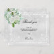 Un carte de remerciements élégant avec photo. Un faux arrière - plan métallique d'aspect argenté, de la poussière de parties scintillant faux, des fleurs blanches et de la verdure. Personnalisez et ajoutez votre note de remerciement. Texte noir.