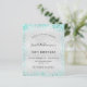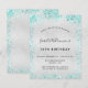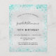 Pour un élégant 18ème anniversaire (ou tout âge). Un arrière - plan métallique à l'aspect faux argenté. Décoré avec de la poussière de parties scintillant turquoise. Personnalisez et ajoutez un nom, un âge et des détails de la fête. Le nom est écrit avec un script de style manuscrit