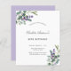 Un élégant arrière - plan blanc à l'avant. Décoré d'eucalyptus et de fleurs de lavande. Personnalisez et ajoutez vos noms et détails. Retour : arrière - plan couleur lavande.