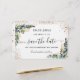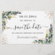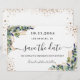 Une soirée branchée Save the Date pour un 40e anniversaire (ou tout autre âge). Un élégant arrière - plan blanc décoré d'eucalyptus, de verdure, de feuillage doré et de poussière de parties scintillant en faux or. Personnalisez et ajoutez une date, un nom et un texte. . Le texte : Save the Date est écrit avec un grand script de style à la main tendance avec des swashes.