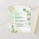 Pour une soirée d'anniversaire élégante de 50ème (ou tout âge). Un arrière - plan doré à l'eau décoré de végétation d'eucalyptus et de poussière de parties scintillant en faux or. Personnalisez et un nom et des détails du parti. Lettres noires et dorées. Retour : arrière - plan vert couleur eau