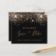Une petite fille et tendance Enregistrer la carte Date pour une fête d'anniversaire de 40e (ou tout âge). Un arrière - plan noir décoré de parties scintillant en faux or. Modèles pour une date, un nom et un texte. Lettres de couleur dorée. Le texte : Save the Date est écrit avec un grand script de style à la main tendance.