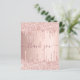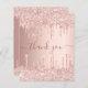 Un carte de remerciements d'anniversaire féminin et élégant. Un or rose, rose faux métallique à l'apparence arrière - plan. Avec des gouttes de fausse parties scintillant, la peinture goutte à goutte. Sur l'avant, grand rose noir couleur or couleur main lettré script et le texte : Merci. Retour : Personnalisez et ajoutez Votre note de remerciement et votre nom. Le nom est écrit avec un script de style moderne écrit à la main avec des swashes. Pour que les swashes ne suppriment que le nom de l'échantillon, laissez les espaces ou émoticônes devant et après le nom.