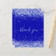 Couleur arrière - plan bleue royale. Décoré avec de la poussière de parties scintillant en faux argent. Sur l'avant grand blanc écriture et le texte : Merci. Retour : Personnalisez et ajoutez Votre note de remerciement et votre nom. Le nom est écrit avec un script de style moderne écrit à la main avec des swashes. Pour que les swashes ne suppriment que le nom de l'échantillon, laissez les espaces ou émoticônes devant et après le nom.