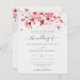Un élégant faire-part de mariage floral moderne avec des fleurs de cerisiers roses et de la calligraphie moderne sur une texture de papier fait à la main.