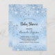 Pour un baby shower, célébrer un bébé garçon. Un arrière - plan faux métallique bleu clair. Décoré avec de la poussière de parties scintillant imitation. Modèles pour le nom de la mère à être et les détails de la fête. Le nom et le texte : Baby shower sont écrits avec un script de style écrit à la main