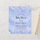 Pour un baby shower, célébrer un bébé garçon. Un arrière - plan faux métallique bleu clair. Décoré de faux parties scintillant. Modèles pour le nom de la mère à être et les détails de la fête. Le nom et le texte : Baby shower sont écrits avec un script de style écrit à la main