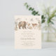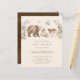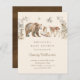 Budget Forêt Boisée Animaux Genre Neutre Baby shower Invitation. Dans un écrin de beige serein, cette invitation présente des illustrations aquarellées de charmants animaux boisés, dont un ours, un écureuil et un cerf, nichés au sommet d'un délicat feuillage botanique. La typographie fantaisiste mais élégante présente élégamment les détails de votre fête, invitant les invités à célébrer l'arrivée prochaine dans le style rustique.