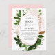 Budget Greenery Botanical Watercolor and Rose Gold - Blush Pink Geometry Spring Baby shower by Mail Invitations on white arrière - plan - comprend une belle et élégante typographie script avec des feuilles botaniques modernes et de la verdure pour la célébration spéciale Mère à être.