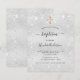 Une invitation au baptême moderne, élégante et minimaliste pour les garçons et les filles. Arrière - plan métallique argenté Faux décoré de poussière de parties scintillant imitation. Personnalisez et ajoutez un nom et des détails. Lettres de couleur noire.