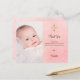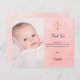 Une carte de remerciements de baptême moderne et élégante. Un arrière - plan rose vif avec des points dorés, brille. Personnalisez et ajoutez votre photo de l'enfant, merci note et nom.