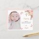Une carte de remerciements de baptême moderne et élégante. Un arrière - plan blanc décoré de fleurs rousses, d'herbe de pampas et de papillons. Personnalisez et ajoutez votre photo de l'enfant à l'intérieur du cadre de l'arc, merci note et nom.