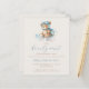 Cette mignonne invitation au baby shower comporte un ours en peluche d'aquarelle douce en tenue d'aviateur bleu, assis sur un nuage, au-dessus des mots "nous pouvons attendre tôt" en écriture manuscrite bleue. Personnalisez le texte avec le nom de la maman-to-be en écriture bleue et les détails en police sans serif sur un arrière - plan beige.