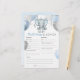 Cette carte de jeu de prédictions bébé avec des bébés éléphant bleu et gris avec des ballons et des confettis. Idéal pour que vos invités s'amusent.