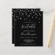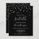 Ce design moderne présente des confettis triangulaires en faux argent sur un arrière - plan noir. Le mot "soixantième" apparaît dans une police élégante d'écriture gris clair. Personnalisez l'invitation avec le nom de l'invité d'honneur en caractères gris clair, ainsi que la date, le lieu et d'autres détails en gris clair sans serif type.